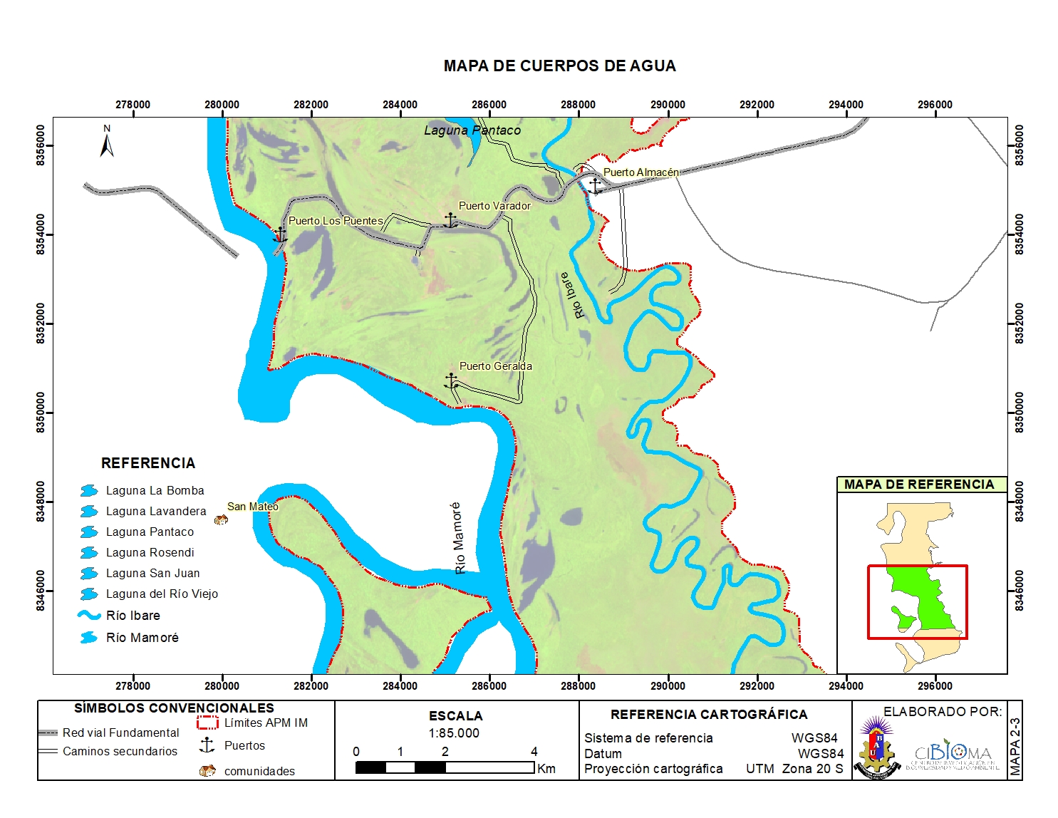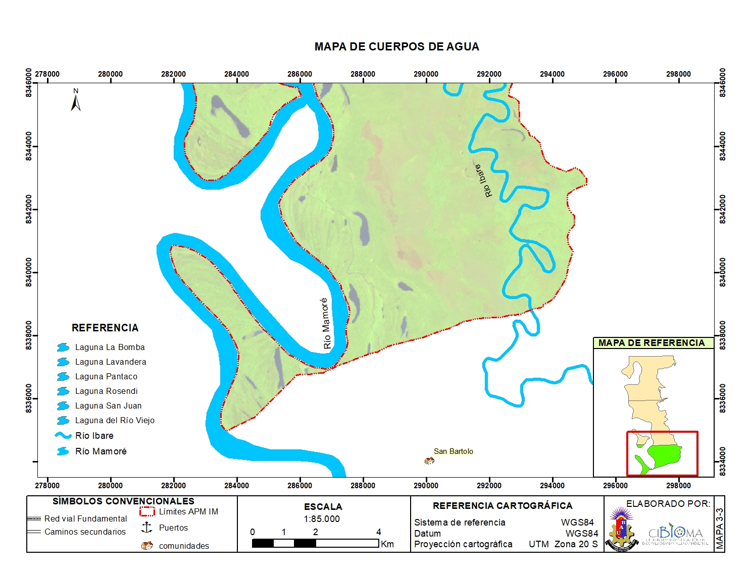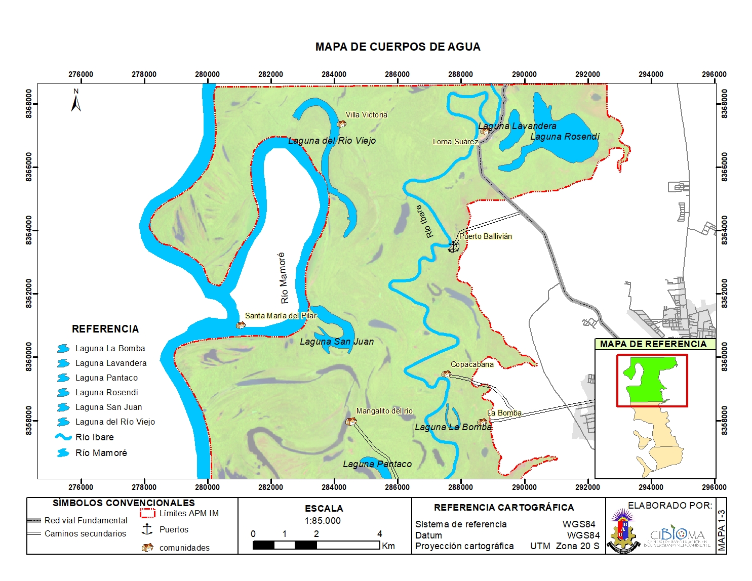Presenta los ríos y lagunas que están dentro del APM Ibare Mamoré, se encuentra representado en 3 partes para su mejor visualización.