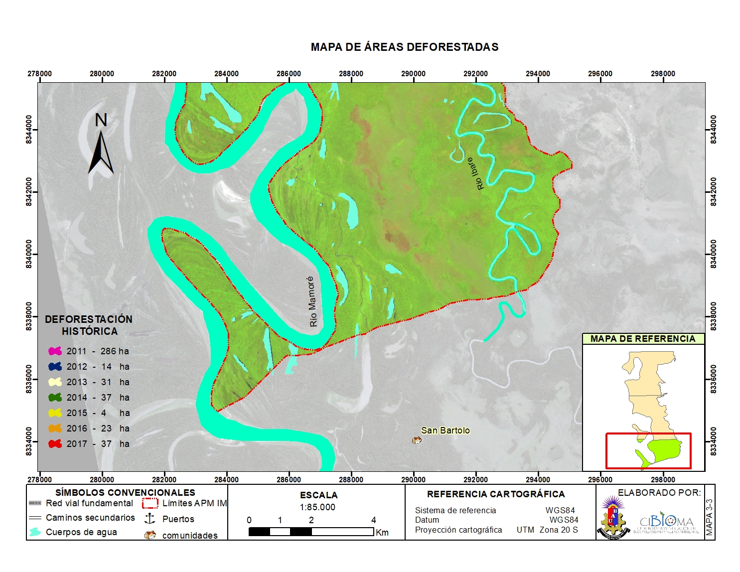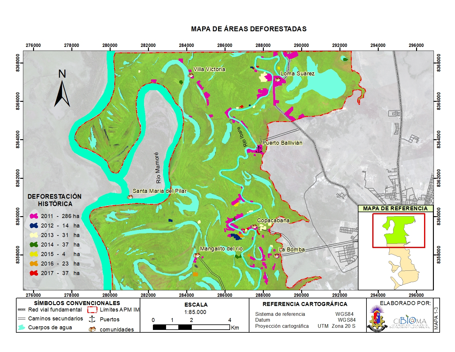 Muestra áreas quemadas por cantidad de hectáreas por año, desde el año 2011 al 2017, la presentación se realiza en 3 partes para mejor visualización.